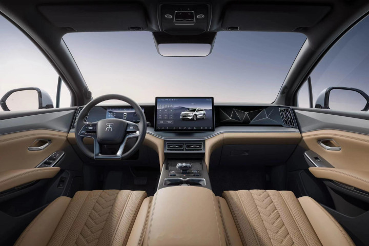 内饰用料很着实,大面积软质包裹搭配缝线工艺,全系标配仿皮座椅,摸上去莫得低价感,还提供金沙陶、暮云灰两种内饰配色可选,兼顾家用温馨感和年青化需求。面容盘是10.25英寸全液晶规格,露馅昭着详尽,中控屏则是15.6英寸可旋转大屏,车机搭载DiLink智能座舱系统,撑抓5G速联、AI全场景语音交互,能一语气对话、四音区识别,还能竣事可见即可说、三指盲操调空调等操作,开车时无须分神找按键。顶配车型还加了127色3D景深氛围灯、26英寸W-HUD昂首露馅系统、一方法冷暖雪柜和8扬声器高保真音响,新增的无麦K歌、露营模式,自驾时能径直把车内酿成转移文娱舱。