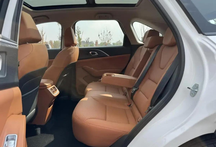 尺寸方面,长宽高分袂为4800/1895/1730mm,轴距为2810mm。推行体验下来,176cm的乘客坐进后排,腿部能留出两拳到两拳半的距离,头部空间也有一拳余量,不会以为压抑。后排是纯幽谷台狡计,满载三名成年东说念主时,中间乘客无须委曲缩腿。全车还有近30处储物点,门板能塞下1升保温杯+雨伞,中央扶手箱能放10寸平板,后备箱通例景色能装3个28寸行李箱,后排座椅40:60放倒后还能装下床垫、婴儿车等大件,实用性拉满。