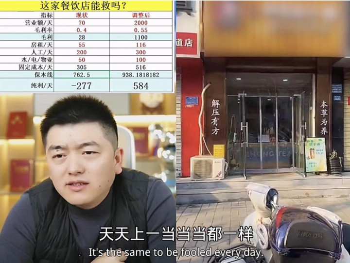 可思而知,大姐以每天几块钱营业额的速率,赔光了20万加盟费和装修费,历时3个月。