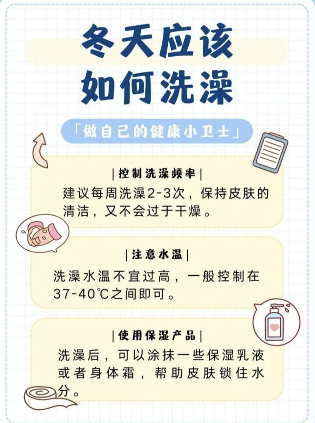 那么冬季洗沐究竟该怎样把抓“度”?医师给出了科学提出:健康成年东谈主在冬季可字据自身情况,将洗沐频率规模在每周1-2次;老年东谈主由于代谢较慢、皮肤油脂分泌更少,可相宜减少至每10-14天一次,若出汗较少或活动量不大,以致可蔓延至两周一次。洗沐时需细心水温不宜过高,以38-40℃为宜,幸免使用碱性强的肥皂、沐浴露,洗沐技能规模在10-15分钟内,洗完后立即用柔嫩毛巾擦干体魄,尤其是腋下、腹股沟等褶皱部位,实时涂抹保湿霜锁住水分,同期衣裳御冬衣物,幸免凉风直吹。