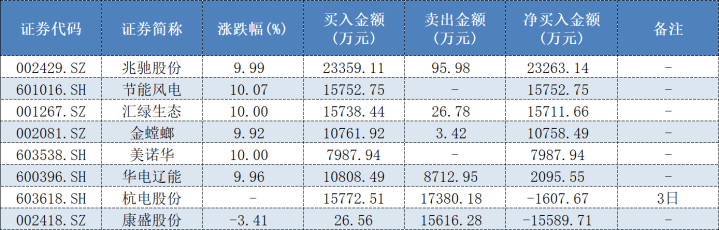 电力股方面,紫阳东路4月23日重心押注节能风电(601016.SH),净买入1.58亿元。