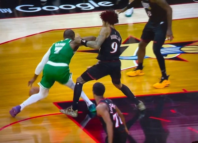 kaiyun sports 杰伦·布朗伸胳背被吹罚首要犯规! 绿队列记: 这若是SGA就不会吹