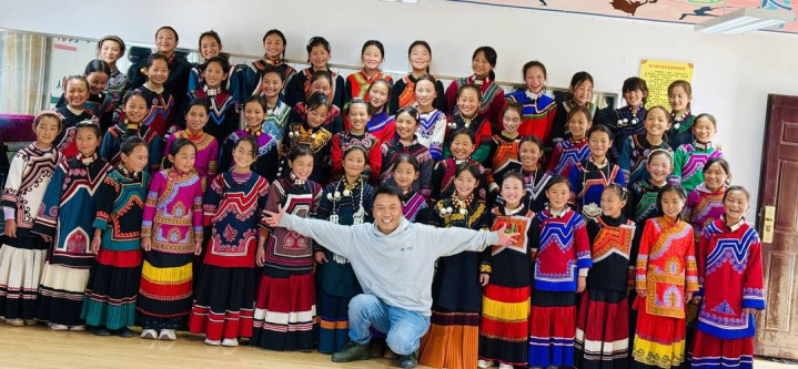 与此同期,吉布小龙也迎来了新的身份——他被聘到镇中心校,每周5天纪律前去不同学校上音乐课,“每寰宇午我就开着车来回不同学校,保证让每个学校的妞妞们,皆能有一两个小时的培训时刻。”2018年创立“妞妞齐唱团”时,他和共事仅在我方的学校训导,学生东说念主数惟有4东说念主,如今多所学校的孩子加入,成员已达500东说念主。