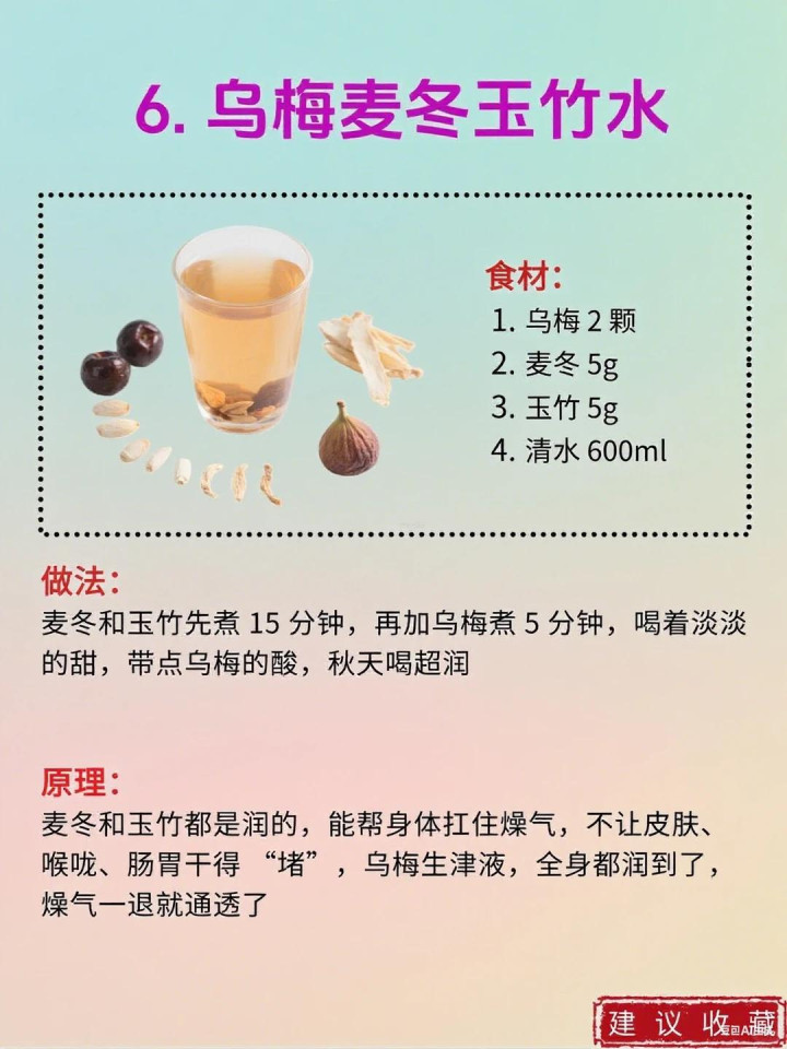 6⃣️ 乌梅+麦冬|滋阴补水,养肤润燥(对应“皮肤堵”)