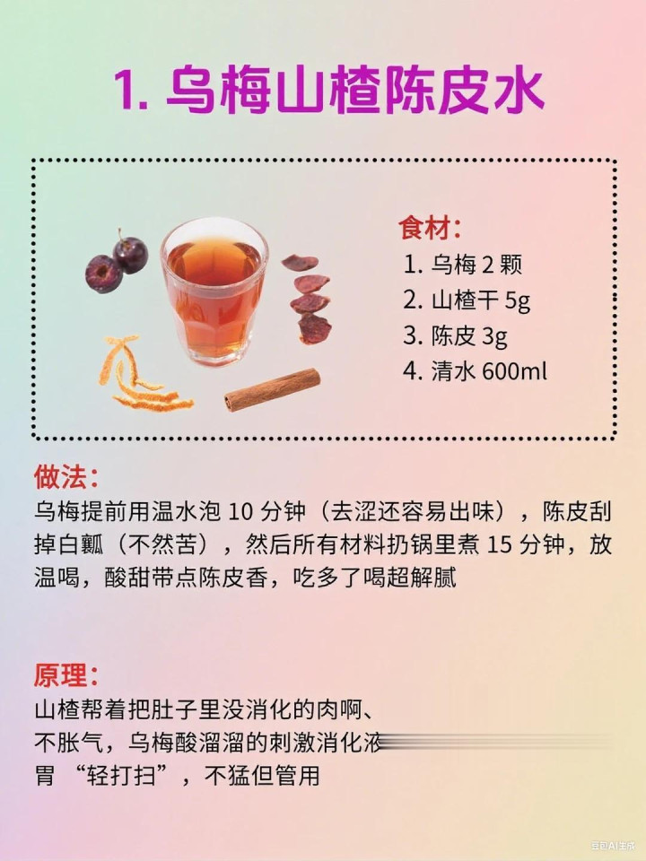 2⃣️ 乌梅+陈皮|促消化,解浓重(对应“肠胃堵”)