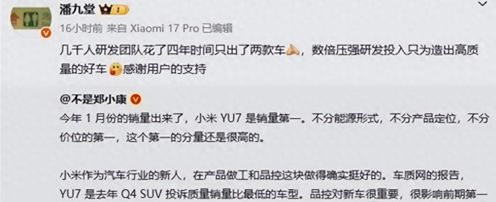 小米YU7粗略取得如斯好的销量收成,如故因为小米团队几千东谈主,骤然四年的时辰只研发两款车。