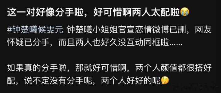 不事自后巧合率是分了手,钟楚曦连官宣恋情的微博都删了。
