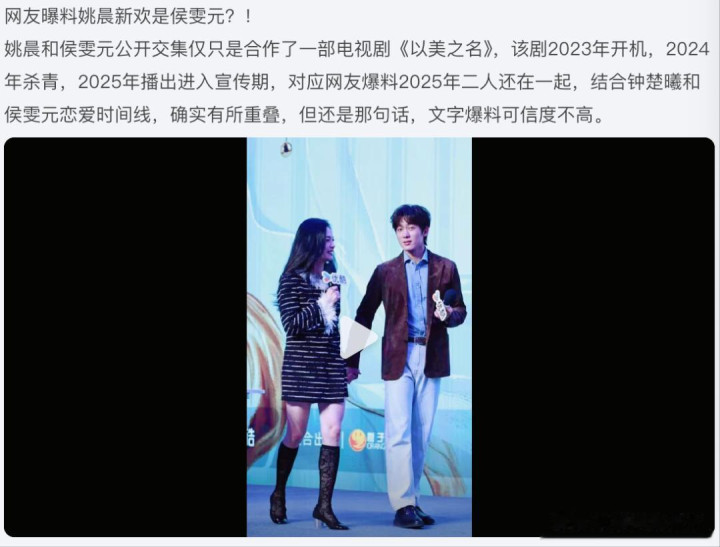 当前民众都在说姚晨和侯雯元在一块了,以至还过渡到将近成亲了。