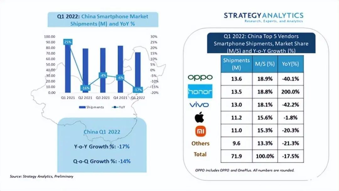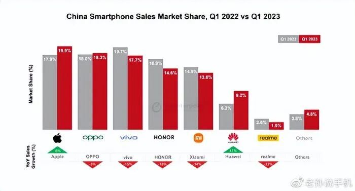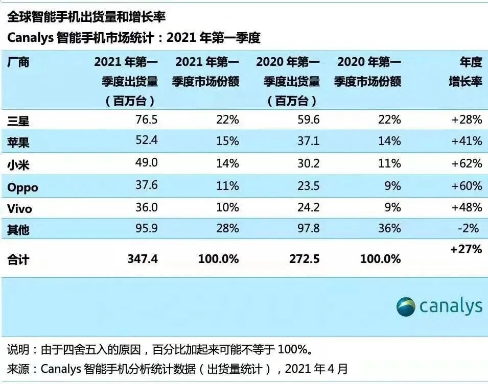 比拟华为和苹果,OPPO、vivo、小米这一季度的压力要大得多。