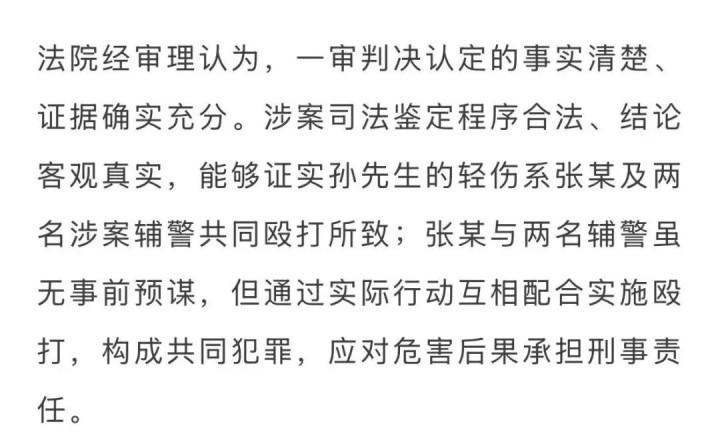 2025年11月12日上昼,青海西宁市城北区东说念主民法院对孙先生被民警辅警殴打一案公开宣判,3名民警辅警均因犯挑升伤害罪获刑:其中涉案的民警张某被判有期徒刑8个月,立即奉行;两名辅警被判有期徒刑8个月、缓刑一年。