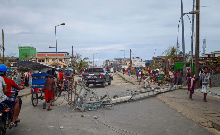 当地时分2026年2月11日,马达加斯加图阿马西纳市,热带气旋“格扎尼”贫窭当地,电线杆子倒在街谈上。