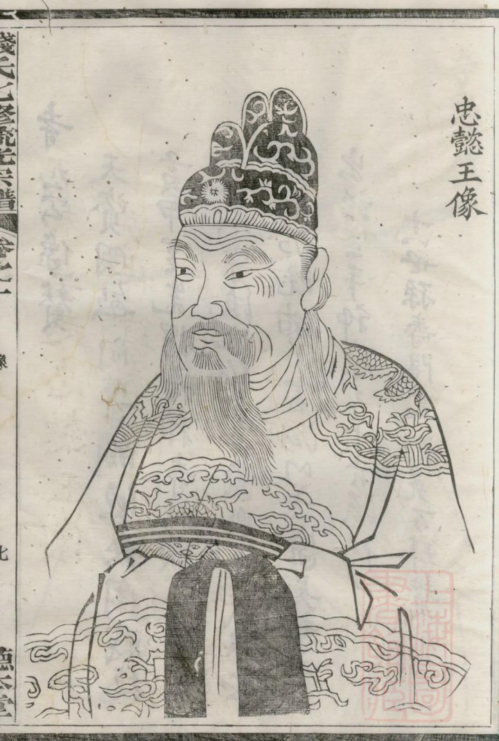 吴越忠懿王钱俶像。开始/民国三年钱文德修《吴越钱氏七修流光宗谱》,上海藏书楼藏