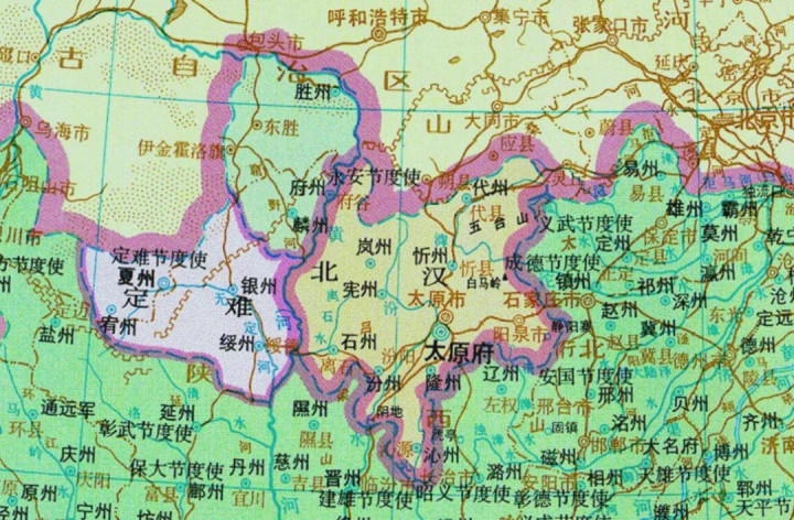 北汉天会三年(959)舆图。开始/谭其骧《中国历史舆图集》