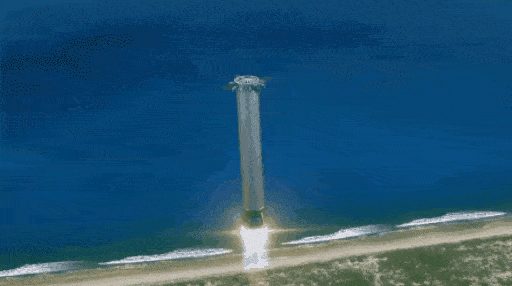 更精彩的是一级火箭:在爬升逾越高度100公里的卡门线后,运转复返海面,在预定的高度燃烧,握住疗养姿态,稳稳地降落在“领航者”号网系回收平台船隔邻大致200米的海面上。