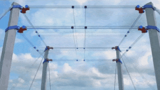 网系回收属于垂直起降回收的一种,当火箭降至一定高度时,回收系统的“井字”形绳子收紧,箭体上的挂钩就不错挂在4根“井字”形绳子上,完成拿获回收,箭体下方与大地不构兵。