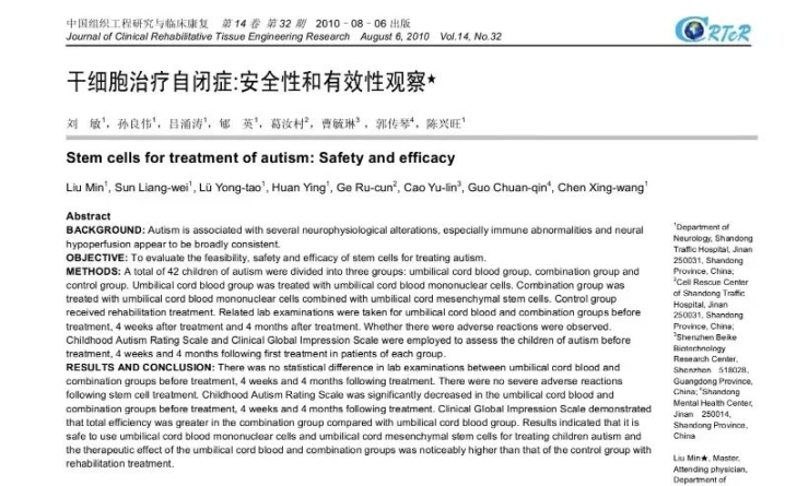 另外一项盘问把42例自闭症患者分红了三组,区别是脐血组(接管脐血单个核细胞骚扰)、夹杂组(接管脐血单个核细胞聚会脐带间充质干细胞骚扰)和对照组(仅接管康复西宾)。