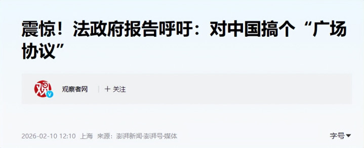 《战抖!法政府施展敕令:对中国搞个“广场协议”》不雅察者网2026-02-10 12:10