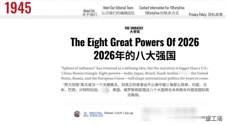 好意思国一直对接触终点有敬爱,唯恐寰宇太平的花样,好意思国媒体《1945》网站上最近发表了一篇由法利博士编写的著作,斗胆展望,在2026年开云sports,天下将出现八雄师事强国。好意思媒指出:印度、日本、巴西、沙特、中国、好意思国、俄罗斯和欧盟,将在改日数年内塑造国外政事时势。