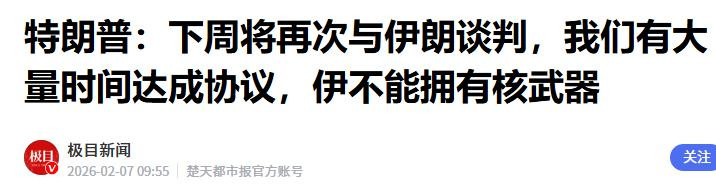 极目新闻——特朗普:下周将再次与伊朗斟酌,我们有大批期间完了合同,伊不成领有核火器