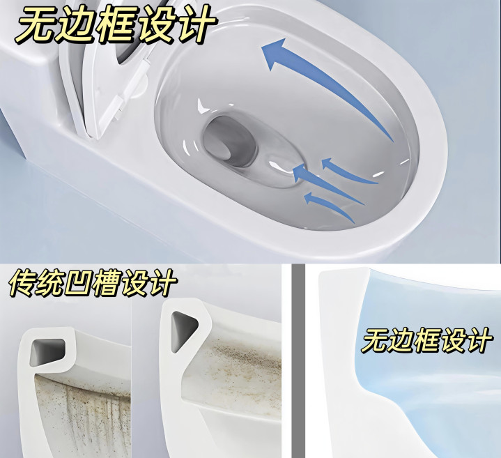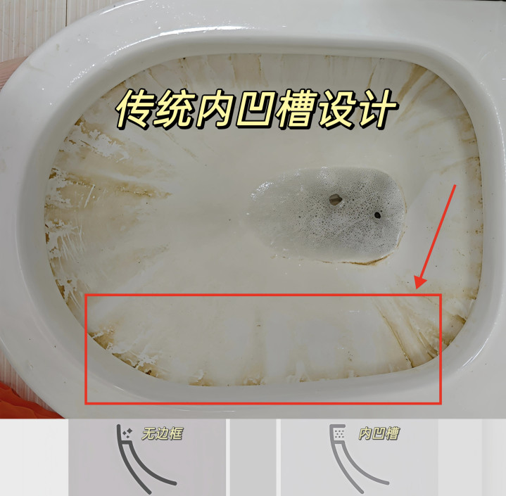 听劝就选∶恢弘框蓄意,内壁边框莫得凹槽,无内侧翻边死角,不盘虬卧龙、不挂污,清洁超省事,冲水阴私更全面。
