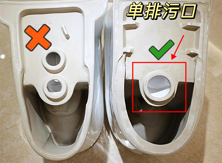不要选∶双排污口蓄意的,堵塞概率高,闲置口密封不严,易返味、渗水、密封垫老化后,异味、漏水概率比单排污口高。