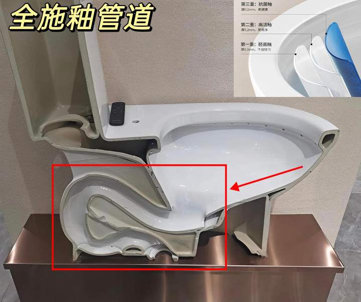 一定要选∶全施釉的马桶(内壁+管说念内壁全是施釉)管说念光滑不挂污、不堵塞,冲水更顺畅,好擦洗。