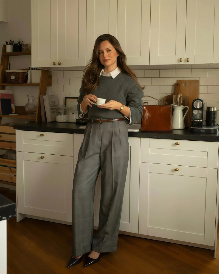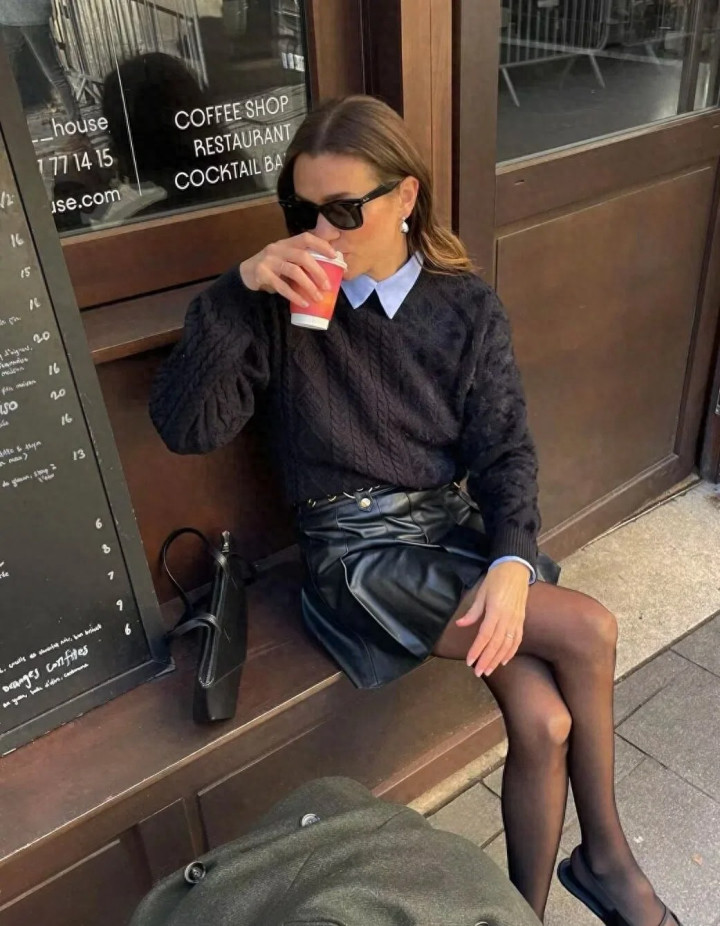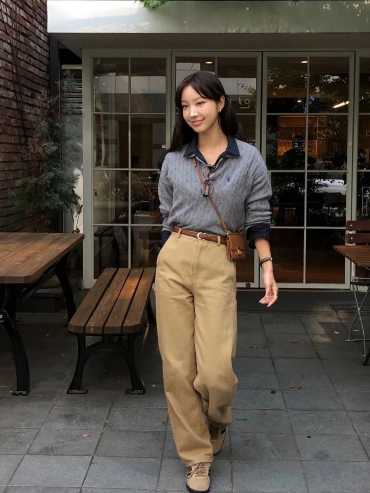毛衣叠衬衫这个搭配在本年相等火,还有一个审好意思趋势上的原因,学院风正在从年青女孩的圈子往外扩,三四十岁的女性穿这一套也不会显稚拙,因为毛衣和衬衫本人皆是成年东谈主的衣橱基础款,它们拼在一齐仅仅多了一份书卷气。