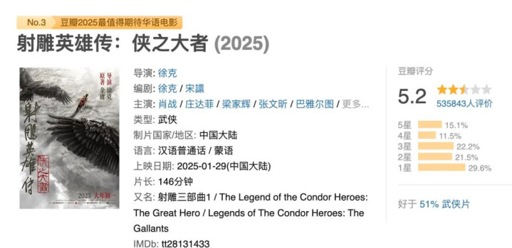 谨记前年的电影《射雕好汉传:侠之大者》,刚运行的预售也相配猛,关联词该片的制作很不走心,王人备和“侠”扯不上什么关联。