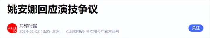 姚安娜复兴演技争议——环球时报