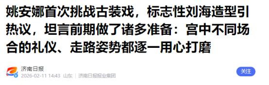姚安娜初次挑战古装戏,符号性刘海造型引热议,坦言前期作念了诸多准备:宫中不同地方的礼节、走路姿势齐逐个精心打磨——济南日报