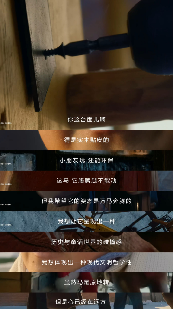 短片用一种带点幽默、但举座很克制的方式,论说了一位终年在外标的游乐场的父亲,和考了满分的女儿之间对于欢跃和已毕的故事。年关将至,游乐方位约到期关闭,父亲踏上归程时得知女儿收货可以,需要实践“礼物任挑”的商定。孩子念念要一座旋转木马,父亲早先拆了一只旧木马念念打发曩昔,却在看到女儿失意的形状后缔结到事情没那么浅陋。在妻子的埋怨中,他赌气说出那句“整不出来(悉数旋转木马)我就不走了”,这句随口的话,却被孩子紧铭刻取,也不测拉开了后头一连串故事。