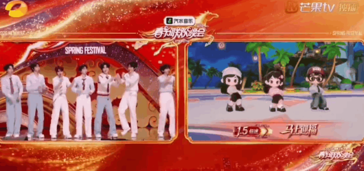 期间少年团算是本日晚会上着名度相对较高的团体了,湖南卫视也给了不少镜头。