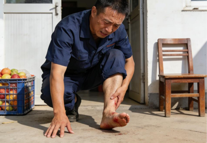卢建成强忍着不适陆续通话,可当电话挂断,他折腰思望望脚时,发现鞋边如故有点饱读起来,朦胧透出一圈淡红色。他心头一紧,赶紧把果箱推到一边,脱鞋一看,右脚小趾旯旮竟有一块乌紫,皮肤发亮发硬。为了证实情况,卢建本钱能地蹲下去检察伤口,可当他起身时,一股刺痛感从脚底直往小腿抽,像是被锥子扎了一下。他使劲一拐,通盘东谈主成功坐到地上。老伴闻声跑出来,看到他脸发白,盗汗直冒,赶紧扶起他。